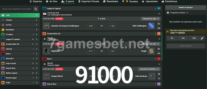 A aposta 91000 oferece aos jogadores a experiência mais conveniente de apostas em eSports!